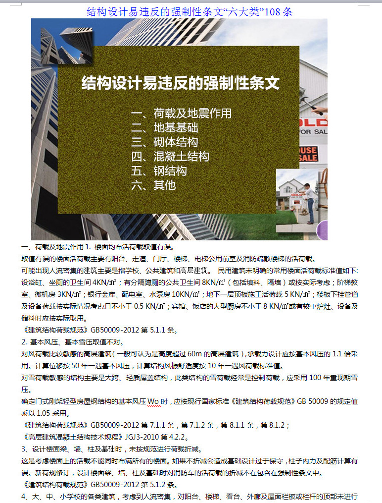 結(jié)構(gòu)設(shè)計易違反的強制性條文“六大類”108條