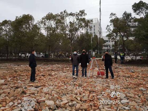 2月3日,我院再次接到市重點(diǎn)工程管理處的緊急任務(wù),由我院測(cè)量隊(duì)承擔(dān)市新型冠狀病毒肺炎定點(diǎn)收治備用醫(yī)院三期場(chǎng)地的地形圖及土方測(cè)繪工作。疫情就是命令,測(cè)量隊(duì)隊(duì)員們聞令而動(dòng),紛紛請(qǐng)戰(zhàn)。由副隊(duì)長(zhǎng)蔣蔚、主任工程師梁發(fā)軍帶領(lǐng)5名隊(duì)員,帶著測(cè)繪工具,不顧場(chǎng)地泥濘,于2月4日上午八點(diǎn)半準(zhǔn)時(shí)到達(dá)現(xiàn)場(chǎng),立即開展工作,并于當(dāng)日完成了測(cè)量數(shù)據(jù)采集、傳輸、整理和制圖工作,為備用醫(yī)院三期建設(shè)提供了詳實(shí)的第一手基礎(chǔ)資料。